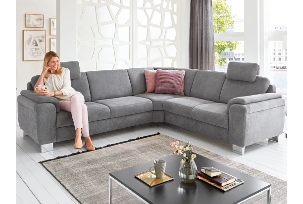 Rohová sedacia súprava Omaha s kreslom je ideálnym miestom na relaxáciu pre celú rodinu. Sedačka má konštrukciu z masívneho dreva a je vyrobená z vysoko kvalitnej studenej peny, vďaka čomu si môžete dopriať komfortné sedenie. Očalúnená štruktúrovanou látkou v odtieni dymovo šedá. Sedacia súprava je vybavená rozkladacou funkciou, úložnou zásuvkou, relaxačnou funkciou operadla aj praktickými podhlavníkmi. Kovové nohy umožnia ľahké upratovanie pod sedacou súpravou aj v jej okolí.