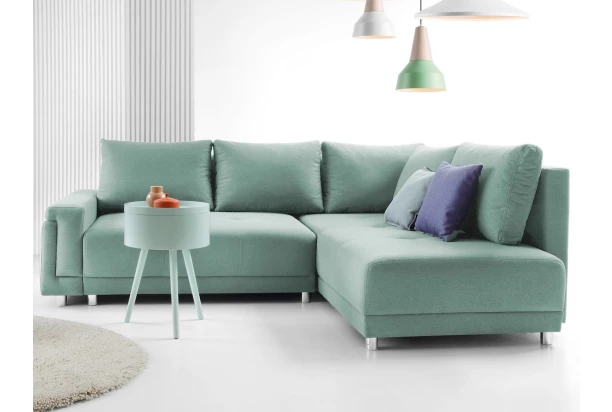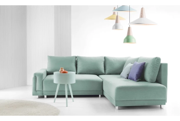 Rohová sedacia súprava s pravým otomanom sa hodí svojimi ideálnymi rozmermi do mnohých interiérov. Zaujímavo tvarovaná podrúčka, prakticky riešený dizajn a príjemne pohodlné sedenie s veľkými opornými vankúšmi si ľahko obľúbite. Očalúnená látkou v odtieni mentolovo zelená.