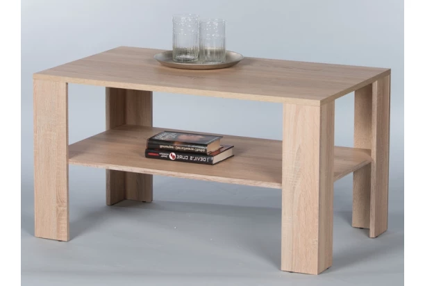 Univerzálny obdĺžnikový stolík v komfortne zvýšenom rozmere nájde svoje miesto v priestore každej obývacej izby. Stabilnú konštrukciu dopĺňa praktická odkladacia polica.