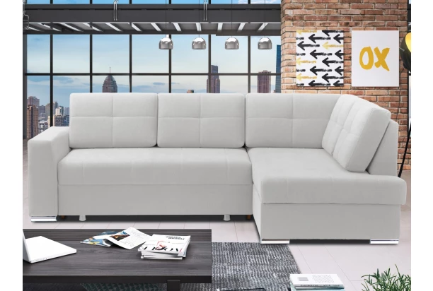 Sympaticky tvarovaná rohová sedacia súprava s otomanom vytvára pravý roh. Očalúnená jemne štruktúrovanou látkou vo farbe svetlo šedá, ktorá má zvýšenú vodeodolnosť. Obsahuje úložný priestor aj funkciu rozkladu na lôžko, ktoré je možné využívať aj na trvalé spanie. Sedačka so svojim štýlom hodí takmer do akéhokoľvek zariadeného bytu, kde poskytne kvalitné pohodlné sedenie.