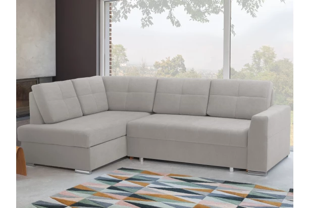 Sympaticky tvarovaná rohová sedacia súprava s otomanom vytvára ľavý roh. Očalúnená jemne štruktúrovanou látkou vo farbe stredne šedá, ktorá má zvýšenú vodeodolnosť. Obsahuje úložný priestor aj funkciu rozkladu na lôžko, ktoré je možné využívať aj na trvalé spanie. Sedačka so svojim štýlom hodí takmer do akéhokoľvek zariadeného bytu, kde poskytne kvalitné pohodlné sedenie.