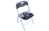 Praktická skladacia stolička z kovu má sedaciu a opornú časť očalúnenú ekokožou s farebnými motívmi Paríža.