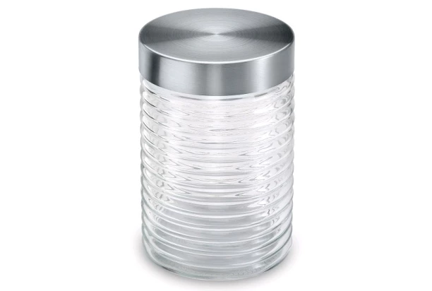 Táto exkluzívna sklenená dóza na potraviny so skrutkovacím uzáverom z nerezovej ocele má objem 1300 ml a skvele poslúži na skladovanie potravín v kuchyni alebo v špajzi.