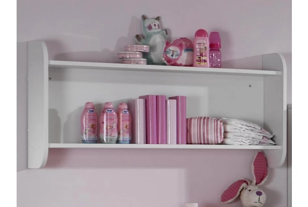 Regál pre zavesenie na stenu z detskej kolekcie Kate je možné využiť v akejkoľvek miestnosti. V detskej izbe môže poslúžiť ako odkladací priestor pre hračky, v obývačke pre umiestnenie dekorácií alebo v spálni pre odkladanie knižiek.