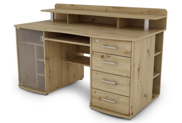 Veľmi prehľadný PC / písací stôl s úložnými priehradkami a zásuvkami je ideálnym pracoviskom pre tých, ktorí chcú mať všetko po ruke. Vyrobený v dekore dub artisan.