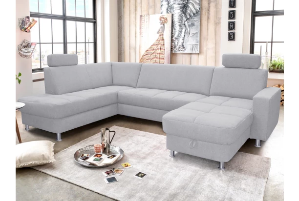 Čisté línie tvarov tejto sedačky pôsobia nadčasovo a hodia sa tak svojim štýlom ako do moderných, tak aj do klasicky zariadených bytov. Obľúbite si komfortne mäkké sedenie s kvalitným vypolstrovaním, ktoré poskytuje každodenné pohodlie. Táto sedačka s dvoma otomanmi tvorí tvar ľavého U a je očalúnená mäkkou žinilkovou látkou vo farbe svetlo šedá. Poťah sedadla navyše zvýrazňuje atraktívny prešiv. Tento model sedačky je navyše obľúbený pre svoje kompaktné rozmery, pretože ľahko sa svojou veľkosťou hodí aj do menších obývačiek. Pri tomto variante sedačky navyše získate dva výškovo nastaviteľné podhlavníky pre pohodlnú oporu hlavy, praktickú funkciu rozkladu na príležitostné lôžko a v neposlednom rade aj relaxačnú funkciu s výsuvom pravého otomanu, kedy sa postupne predĺži plocha otomanu a zároveň sklopí chrbtové operadlo – vznikne tak komfortné lehátko ktoré oceníte napríklad po ťažkom dni v práci.