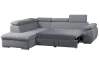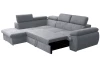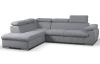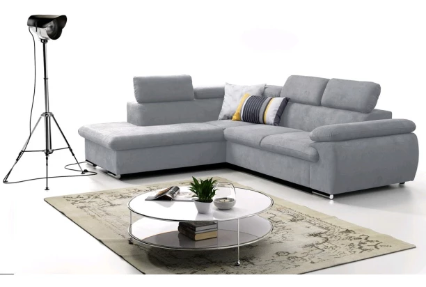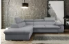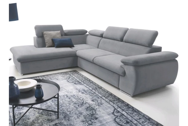Atraktívna rohová sedacia súprava s otomanom vľavo a polohovateľnými chrbtovými opierkami. Očalúnenie príjemne mäkkou látkou vo farbe svetlo šedá. Zaujme moderným dizajnom zaoblených tvarov a poteší kvalitným vypolstrováním pre Váš každodenný komfort. Sedačka je navyše vybavená funkciou rozkladu pre príležitostné spanie i praktickým úložným priestorom pod otomanom – získate tak ďalšie miesto pre ukladanie vecí.