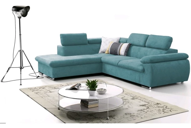 Atraktívna rohová sedacia súprava s otomanom vľavo a polohovateľnými chrbtovými opierkami. Očalúnenie príjemne mäkkou látkou vo farbe petrolejová. Zaujme moderným dizajnom zaoblených tvarov a poteší kvalitným vypolstrováním pre Váš každodenný komfort. Sedačka je navyše vybavená funkciou rozkladu pre príležitostné spanie i praktickým úložným priestorom pod otomanom – získate tak ďalšie miesto pre ukladanie vecí.