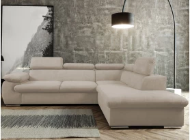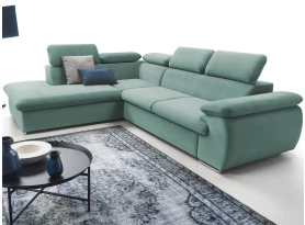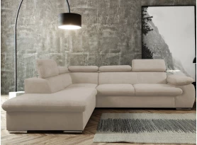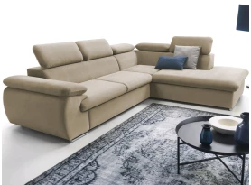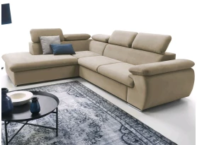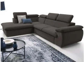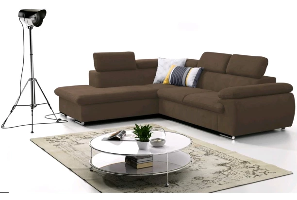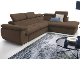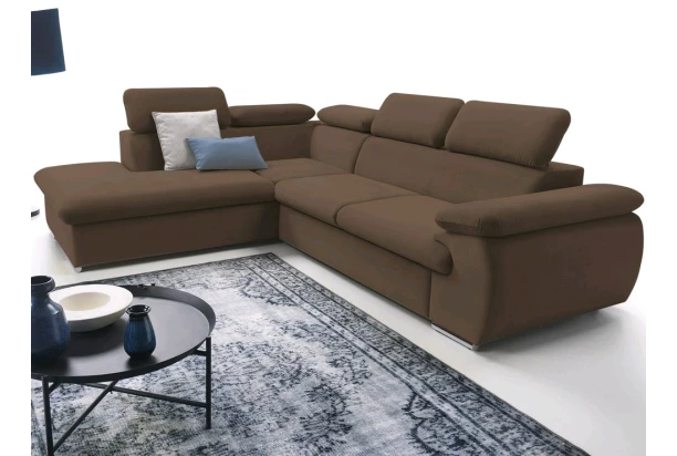 Atraktívna rohová sedacia súprava s otomanom vľavo a polohovateľnými chrbtovými opierkami. Očalúnenie príjemne mäkkou látkou vo farbe hnedá. Zaujme moderným dizajnom zaoblených tvarov a poteší kvalitným vypolstrováním pre Váš každodenný komfort. Sedačka je navyše vybavená funkciou rozkladu pre príležitostné spanie i praktickým úložným priestorom pod otomanom – získate tak ďalšie miesto pre ukladanie vecí.
