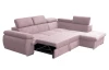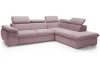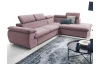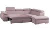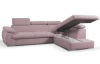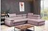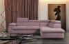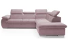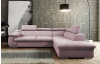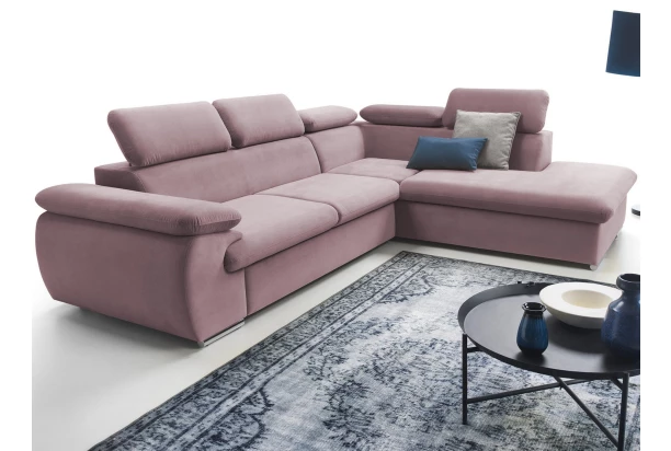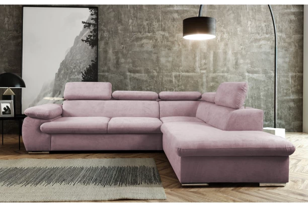 Atraktívna rohová sedacia súprava s otomanom vpravo a polohovateľnými chrbtovými opierkami. Očalúnenie príjemne mäkkou látkou vo farbe ružová. Zaujme moderným dizajnom zaoblených tvarov a poteší kvalitným vypolstrováním pre Váš každodenný komfort. Sedačka je navyše vybavená funkciou rozkladu pre príležitostné spanie i praktickým úložným priestorom pod otomanom – získate tak ďalšie miesto pre ukladanie vecí.