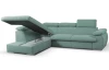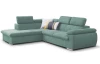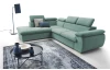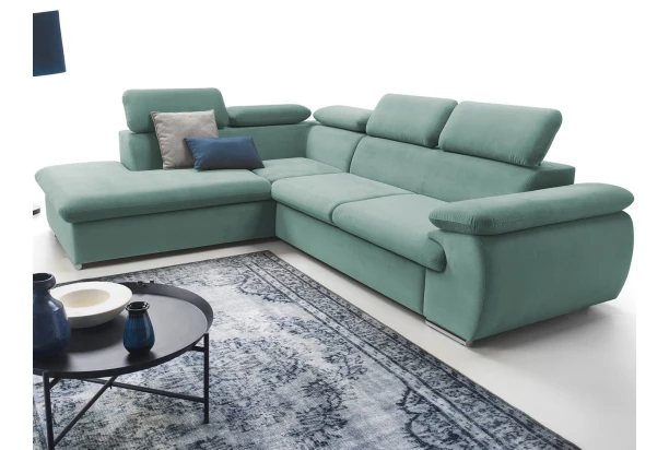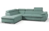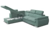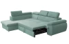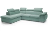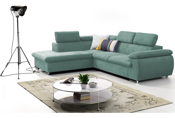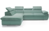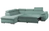 Atraktívna rohová sedacia súprava s otomanom vľavo a polohovateľnými chrbtovými opierkami. Očalúnenie príjemne mäkkou látkou vo farbe mentolovo zelená. Zaujme moderným dizajnom zaoblených tvarov a poteší kvalitným vypolstrováním pre Váš každodenný komfort. Sedačka je navyše vybavená funkciou rozkladu pre príležitostné spanie i praktickým úložným priestorom pod otomanom – získate tak ďalšie miesto pre ukladanie vecí.