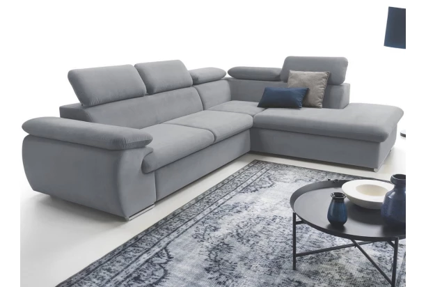 Atraktívna rohová sedacia súprava s otomanom vpravo a polohovateľnými chrbtovými opierkami. Očalúnenie príjemne mäkkou látkou vo farbe svetlo šedá. Zaujme moderným dizajnom zaoblených tvarov a poteší kvalitným vypolstrováním pre Váš každodenný komfort. Sedačka je navyše vybavená funkciou rozkladu pre príležitostné spanie i praktickým úložným priestorom pod otomanom – získate tak ďalšie miesto pre ukladanie vecí.