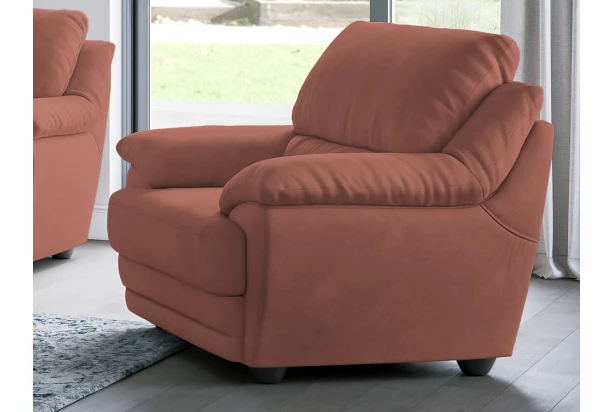 Pohodlne nadýchané vypolstrovanie kresla poskytuje výborný komfort počas sedenia a elegantný dizajn zaoblených tvarov sa hodí do moderného aj klasicky zariadeného interiéru. Kreslo je očalúnené látkou v odtieni medená hrdzavá.