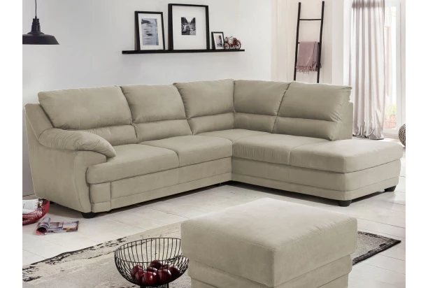 Pohodlne nadýchané vypolstrovanie sedačky poskytuje výborný komfort počas sedenia a elegantný dizajn zaoblených tvarov sa hodí do moderného aj klasicky zariadeného interiéru. Rohová sedacia súprava je očalúnená látkou v odtieni béžová latté a s otomanom vytvára pravý roh. Sedačku ľahko premeníte na lôžko na príležitostné spanie vďaka funkcii rozkladu.