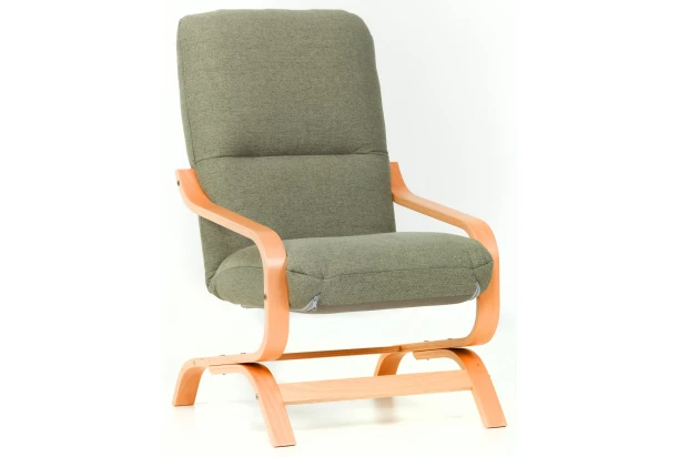 Komfortné kreslo so zaoblenými podrúčkami z ohýbaného dreva v dekóre jelša má mäkko polstrovaný sedák potiahnutý štruktúrovanou látkou vo farbe rákosovo zelená. Vďaka svojej veľkosti sa zmestí takmer do každej obývačky.