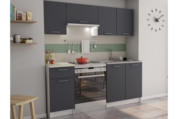 Lacný kuchynský blok Irma dokonale doplní funkčný priestor menšej kuchyne. Nábytok vyrobený v kontrastnej kombinácii bielej farby a šedého grafitu.