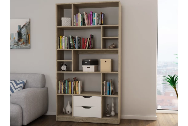 Vysoký regál/knihovňa Sten, dub sonoma/biela