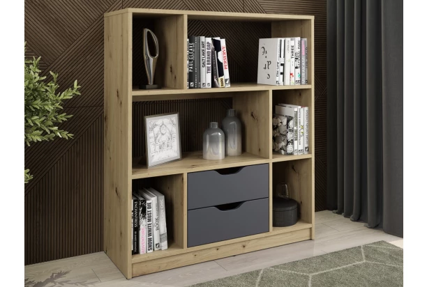 Nízky regál/knižnica Sten Mini, dub artisan/grafit