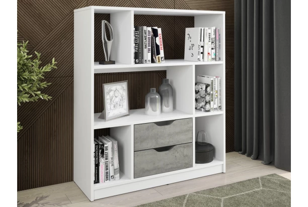 Nízký regál/knihovňa Sten Mini, biela/šedý betón
