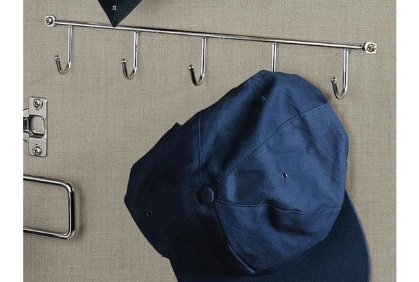Kovový vešiak s 5 háčikmi slúži ako univerzálny doplnok ku skrini. Stačí jednoducho namontovať k vonkajšej alebo vnútornej strane steny skrine. Poslúži na zavesenie doplnkov, šatiek, čiapok, kravát alebo drobného ošatenia.