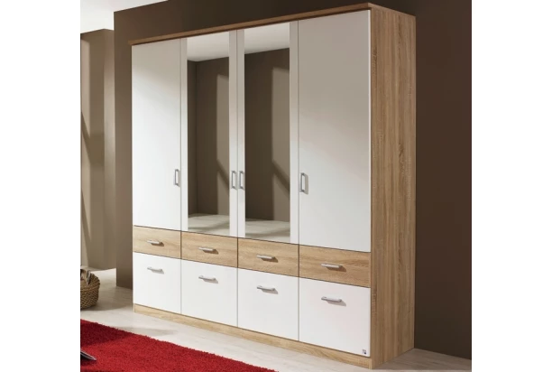Šatník zo série Bremen je obľúbený pre svoju praktickosť a dobrú úroveň spracovania. Vyrobená v kombinácii dekoru dub sonoma a bielej farby. Ponúka úložný priestor, 4 otočné dvere, 2 zrkadlá a 8 praktických zásuviek o rôznych veľkostiach pre prehľadné ukladanie oblečenia, bielizne a doplnkov. Z jednotlivých elementov série Bremen môžete naviac zostaviť ľubovoľne veľkú šatňu a prispôsobiť si tak úložné priestory podľa individuálnych potrieb.