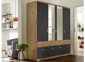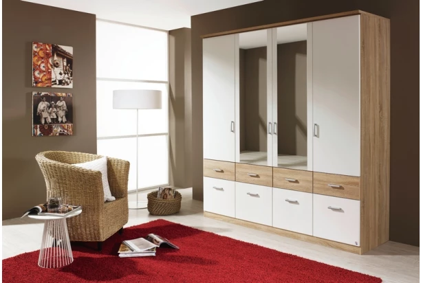 Šatník zo série Bremen je obľúbený pre svoju praktickosť a dobrú úroveň spracovania. Vyrobená v kombinácii dekoru dub sonoma a bielej farby. Ponúka úložný priestor, 4 otočné dvere, 2 zrkadlá a 8 praktických zásuviek o rôznych veľkostiach pre prehľadné ukladanie oblečenia, bielizne a doplnkov. Z jednotlivých elementov série Bremen môžete naviac zostaviť ľubovoľne veľkú šatňu a prispôsobiť si tak úložné priestory podľa individuálnych potrieb.