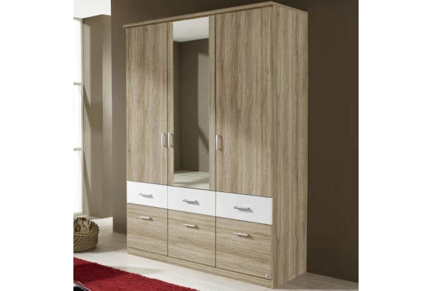 Šatník zo série Bremen je obľúbený pre svoju praktickosť a dobrú úroveň spracovania. Vyrobený v kombinácii dekore dub san remo a bielej farby. Ponúka úložný priestor, 3 otočné dvere, 1 zrkadlo a 6 praktických zásuviek o rôznych veľkostiach pre prehľadné ukladanie oblečenia, bielizne a doplnkov. Z jednotlivých elementov série Bremen môžete naviac zostaviť ľubovoľne veľkú šatňu a prispôsobiť si tak úložné priestory podľa individuálnych potrieb.