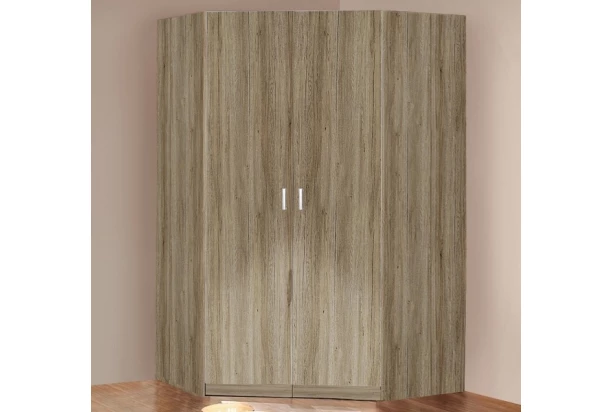 Rohová šatníková skriňa zo série Bremen je obľúbená pre svoju praktickosť a dobrú úroveň spracovania. Vyrobená v dekore dub san remo. Ponúka veľký členitý úložný priestor, 2 otočné dvere, šatníkovú tyč i police pre prehľadné ukladanie oblečenia, bielizne a doplnkov. Z jednotlivých elementov série Bremen môžete naviac zostaviť ľubovoľne veľkú šatňu a prispôsobiť si tak úložné priestory podľa individuálnych potrieb.