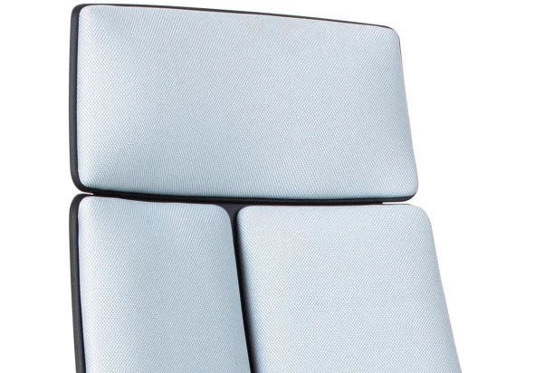Kancelárske kreslo v moderne zaoblenom dizajne má vysoké operadlo s anatomicky vypolstrovanými časťami pre pohodlné sedenie. Očalúnené látkou vo farbe svetlo šedá.