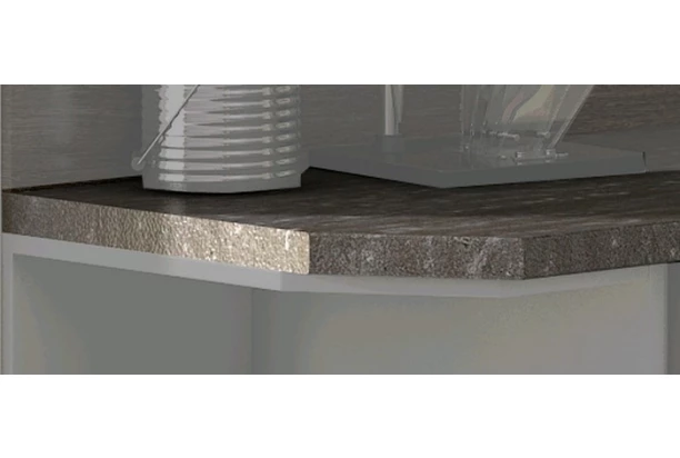 Kuchynská pracovná doska pre regál so šírkou 30 cm – pre osadenie na kuchynský regál so skosenou hranou vľavo o šírke 30 cm. Vyrobená v dekore tmavo šedý travertín.