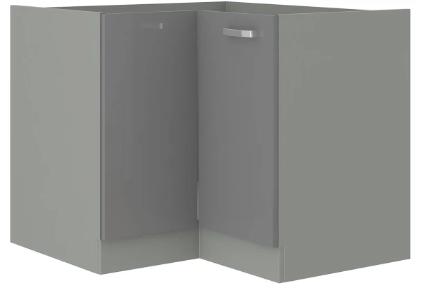 Dolná rohová kuchynská skrinka z programu Grey v jednoduchom, funkčnom a zároveň modernom štýle. Predné plochy v šedom vysokom lesku. Rôzne elementy kuchynského programu Grey môžete medzi sebou ľubovoľne kombinovať a zostaviť si tak ľubovoľne veľkú kuchyňu podľa vašich individuálnych potrieb a priestorových možností.