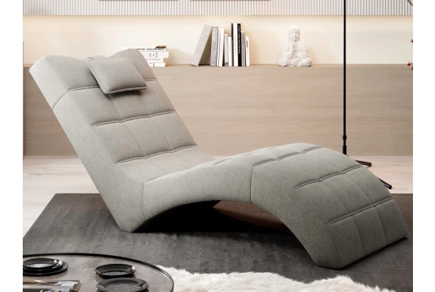 Relaxačné lehátko v anatomickom tvare priamo láka na trávenie príjemných chvíľ počas odpočinku, sledovania televízie alebo napríklad čítania knižiek. Táto leňoška je očalúnená príjemne mäkkou látkou vo farbe šedo-béžová. Moderný dizajn tejto relaxačnej pohovky zvýrazňuje dvojité prešitie aj praktický vankúšik pod hlavu.
