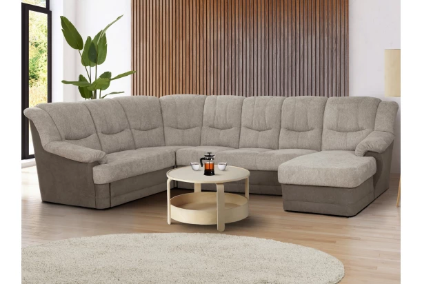 Zaoblené tvary, priestranné sedenie, pohodlne vysoké operadlo a kvalitné spracovanie sú charakteristické pre model sedačky Orion. Sedacia súprava v tvare ľavej U je očalúnená kombináciou látok šedo-hnedá a béžovo-hnedá. Variant sedačky obsahuje rozkladaciu funkciu a praktický úložný priestor.
