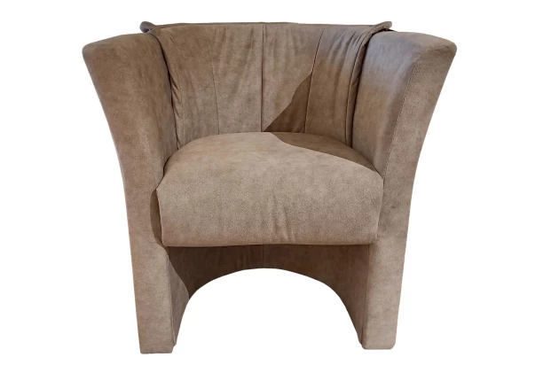 Kreslo Lux je obľúbené pre svoju kompaktnú veľkosť a zaguľatené tvarovanie. Príjemne mäkký látkový poťah v béžovej vintage optike brúsenej kože ,zaujme na pohľad.