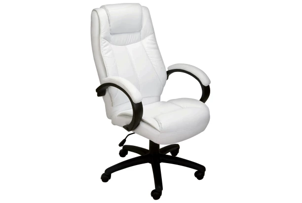 Polstrované kreslo s opierkami poskytuje optimálny komfort pri práci. Potiahnuté bielou ekokožou.
