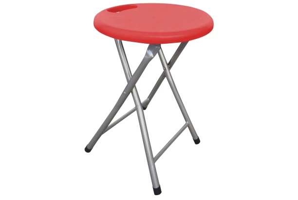 Malá skladacia stolička vo farbe červená. Využiteľná kdekoľvek a pri akejkoľvek príležitosti.