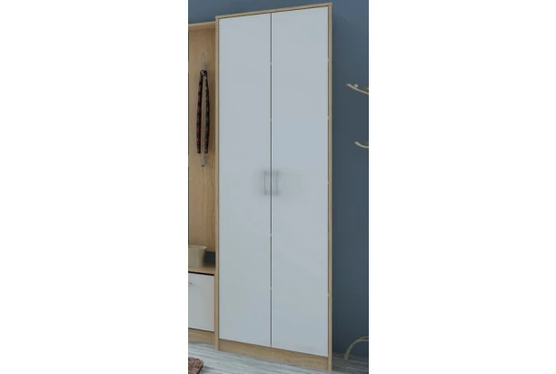 Úzka 2-dverová skriňa, ktorá poslúži dobre v malých priestoroch, v špajzi aj ako botník. V dekore dub Sonoma / biela.