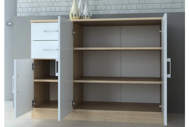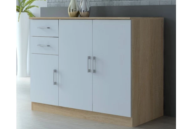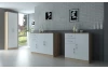 Komody série Universal sú univerzálne pre každú miestnosť. Celkom 3 dvere a 2 zásuvky. Dekor dub sonoma/biela.