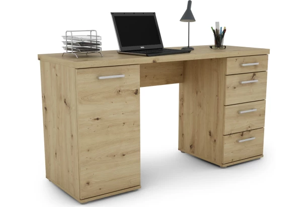 Priestranný písací stôl s pevnou konštrukciou má ľavé dvere s úložným priestorom a rad zásuviek, kam prehľadne uložíte všetko potrebné. Vyrobený v útulnom dekore dub artisan.