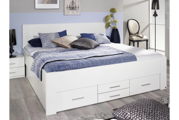 Praktická posteľ o rozmere lôžka 160×200 cm s maximálne využitým priestorom ponúka úložné zásuvky pre ukladanie každodenných alebo sezónnych vecí. V bielej farbe.