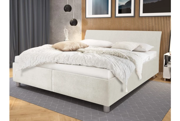 Manželská posteľ s rozmerom lôžka 180×200 cm so zaobleným čelom sa univerzálne hodí do akejkoľvek spálne. Očalúnená príjemne mäkkou látkou s dlhším lesklým vlasom vo farbe krémová. Táto dvojlôžková posteľ obsahuje polohovateľné lamelové rošty aj dostatočne veľké úložné priestory v dolnej časti na ukladanie lôžkovín alebo napríklad veci sezónnej potreby.