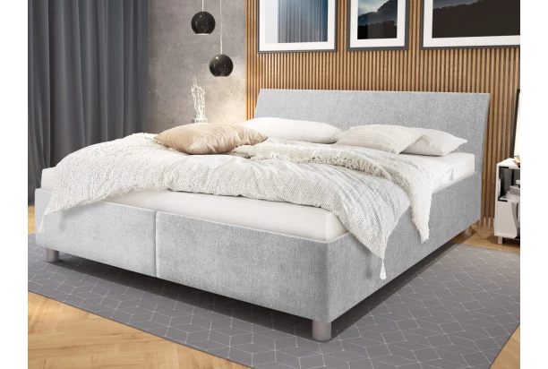 Manželská posteľ s rozmerom lôžka 160×200 cm so zaobleným čelom sa univerzálne hodí do akejkoľvek spálne. Očalúnená príjemne mäkkou látkou s dlhším lesklým vlasom vo farbe svetlo šedá. Táto dvojlôžková posteľ obsahuje polohovateľné lamelové rošty aj dostatočne veľké úložné priestory v dolnej časti na ukladanie lôžkovín alebo napríklad veci sezónnej potreby.