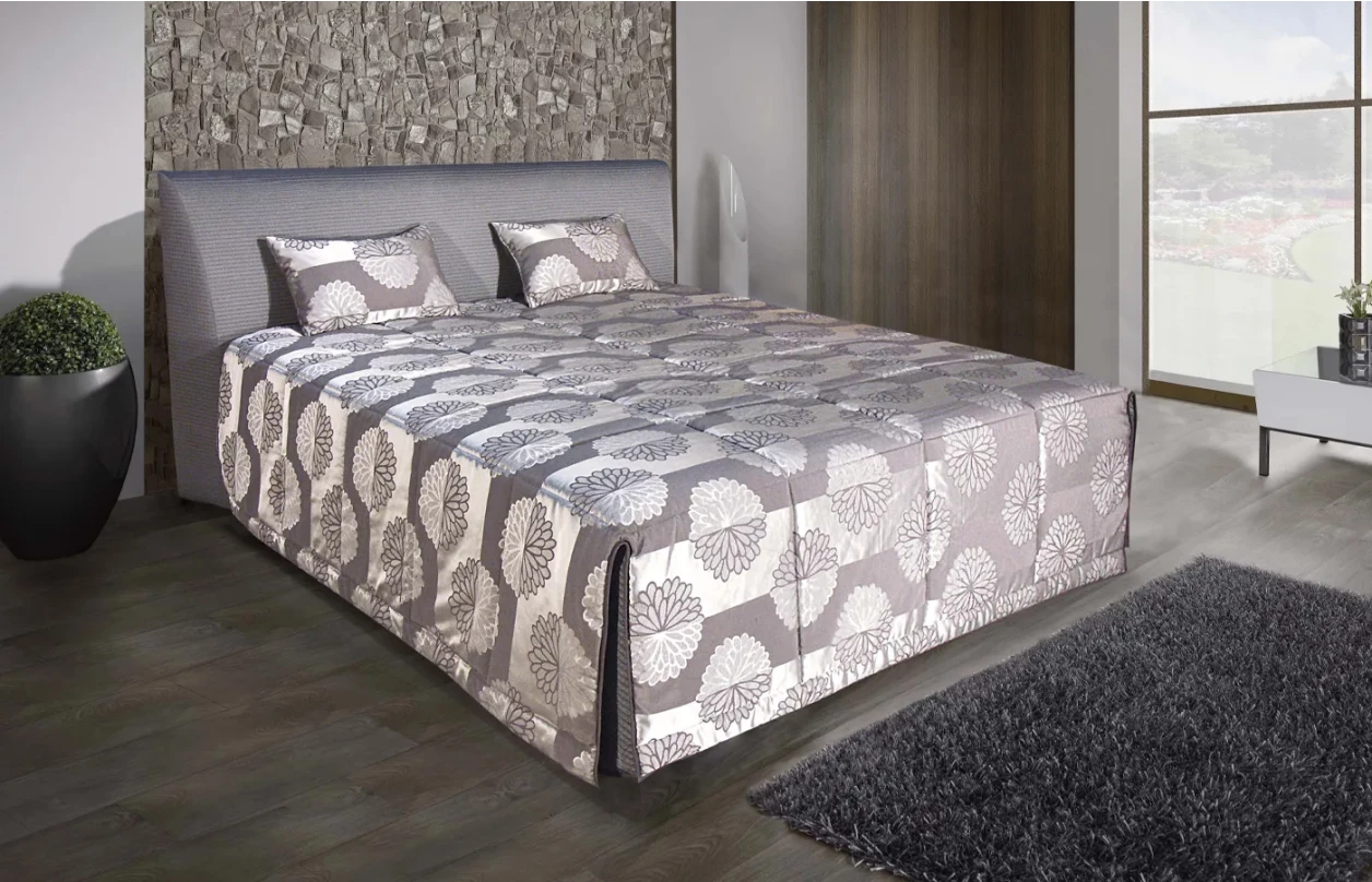 - 1× denná deka (prešitý povrch, látka Valencia 376–18 – plochá tkanina, károvaný vzor, farba béžová/sivá/ biela, zloženie: 90% CO / 10% PES)