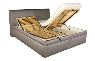 - 2× lamelový rošt (drevený rám, 28 lamiel, nastaviteľná tuhosť v bedrovej časti, stredový popruh proti preťaženiu, dvojité vrecká, elektrická funkcia polohovania hlavovej časti – elektrický motorový pohon – pre relaxáciu/sledovanie televízie, manuálne funkcie polohovania časti pri nohách, výklopná funkcia )