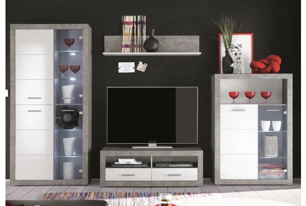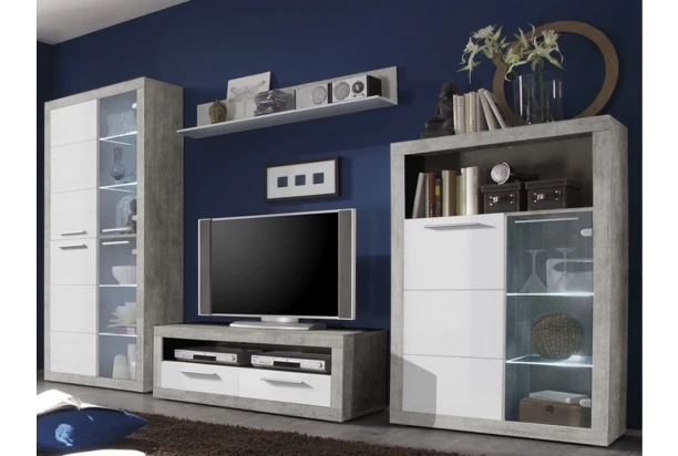 | Zaradenie produktu | kompozitné drevo Lesk Moderný S osvetlením vzhľad betón Biela Šedá Obývacia izba Demont |