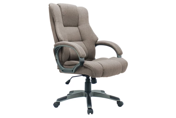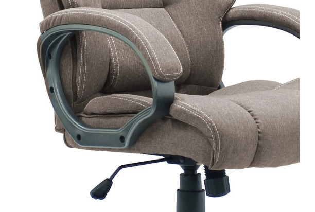 Priestranné kancelárske kreslo s mäkko čalúneným sedákom je potiahnuté látkou v odtieni béžovo-hnedá a je vhodné aj pre vyššie osoby.