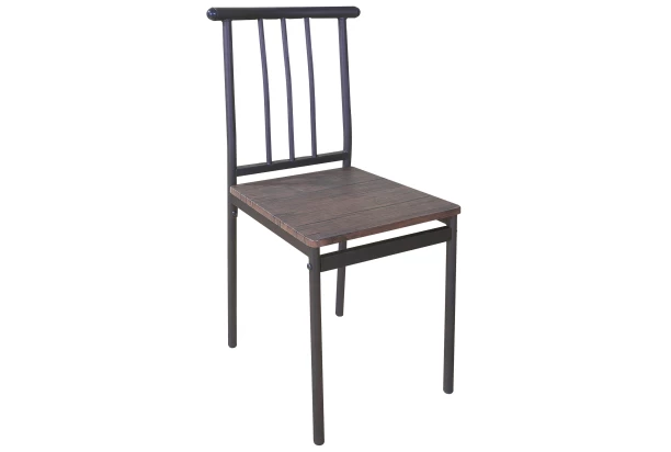 Klasická jedálenská stolička z kombinácie metalicky hnedého kovu a dekoru dreva nájde svoje miesto aj v malom priestore jedálne či kuchyne.