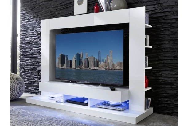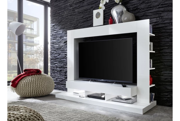 Televízna stena v nápaditom dizajne nájde svoje miesto v každom moderne zariadenom interiéri. Oceníte praktický systém políc a priehradiek, kam ľahko a prehľadne uložíte elektroniku, CD, knižky aj predmety každodennej potreby.