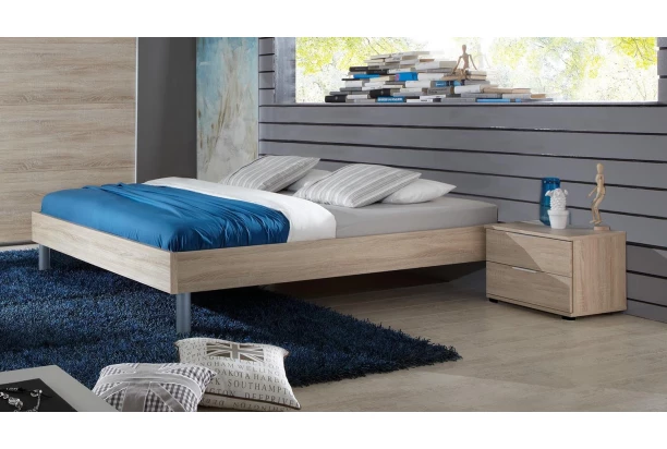 Univerzálna posteľ o veľkosti lôžka 160×200 cm v dekore dub sonoma z programu Easy plus. Stabilný rám na kovových nohách je vybavený mechanizmom, ktorý umožňuje upevniť rošt do rôznych výšok podľa požadovanej výšky lôžka.