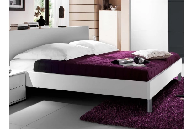 Univerzálna posteľ o veľkosti lôžka 180×200 cm v bielej farbe z programu Easy plus. Stabilný rám na kovových nohách je vybavený mechanizmom, ktorý umožňuje upevniť rošt do rôznych výšok podľa požadovanej výšky lôžka.